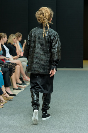 Открыла показ дипломная коллекция мужской молодежной одежды Любови Афанасьевой «Чертоги разума». Яркая, экспрессивная коллекция в стиле шведского дизайна для смелых молодых людей создана из натуральных материалов с авторским принтом дипломантки.