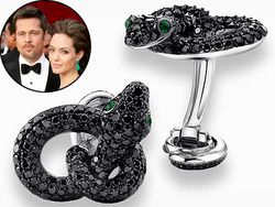 Основой дизайна аксессуаров стала змея, талисман Анджелины Джоли – «змеиный» мотив воплощен в элегантных запонках из 18-каратного белого золота, инкрустированных черными бриллиантами и изумрудами. Хотя стоимость запонок, созданных звездной парой, составляет весьма внушительные 10 тысяч долларов, вся эта сумма будет передана в благотворительный фонд Education Partnership for Children of Conflict (EPCC), со-основателем которого стала Анджелина Джоли.