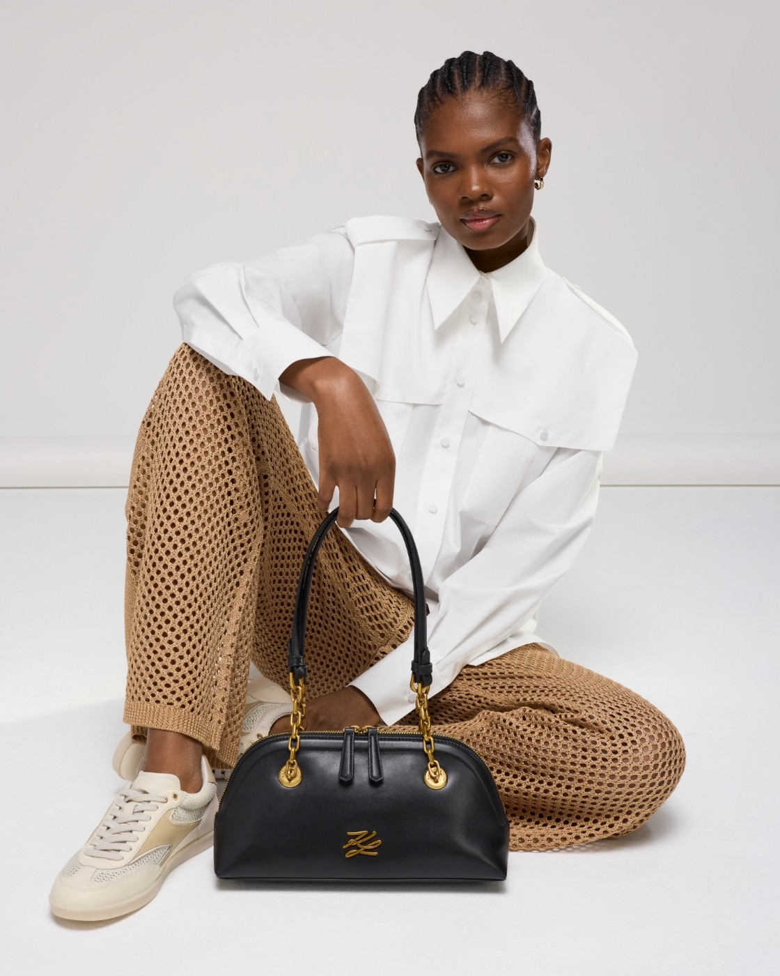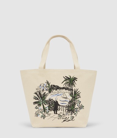 Отдельного внимания заслуживают «пляжные» варианты — невесомые, но сохраняющие статусность и узнаваемость бренда: капсула Ikon Mesh — это воплощение летнего гламура и беззаботного шика. Сетчатый материал, голубые и черные полоски с сочными оранжевыми вкраплениями и игривые брелоки в виде морских обитателей в солнечных очках — оммаж утонченному юмору, присущему самому Карлу.