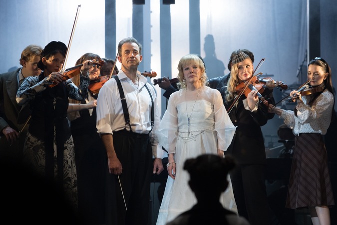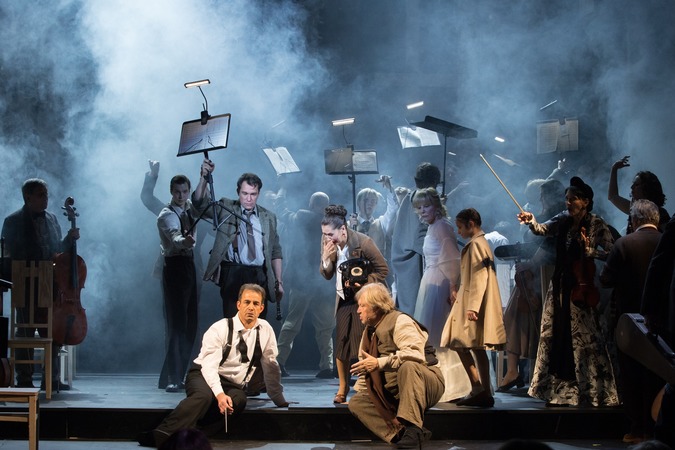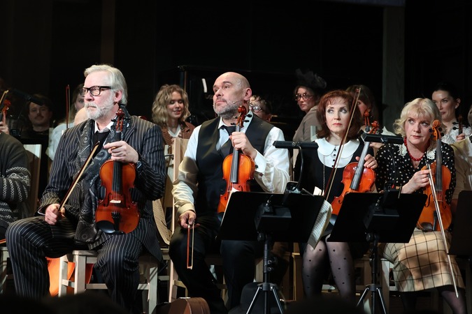 Максим Аверин эффектно и экспрессивно воплощает Концертмейстера Первых скрипок, снова и снова подтверждая, что «скрипка -подлинное чувство оркестра». Виктор Раков предстаёт в образе Концертмейстера Вторых скрипок, их конкуренция с героем Аверина представлена с иронией и гротеском.