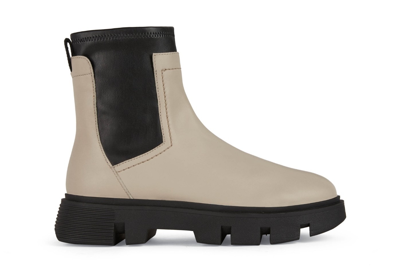 Ботинки на новой колодке Geox Vilde на шнуровке и без, с ультрамодной тракторной подошвой, будут актуальны не только дождливой осенью. Ведь этот удобный и практичный тренд царит на мировых подиумах не первый сезон и не собирается сдавать свои позиции. Массивные брутальные ботинки из натуральной кожи наппа наделены при этом сверхлегкой подошвой и практически неощутимы на ногах – сложно поверить? Тогда стоит примерить! Трудно представить более универсальную пару: нарочито бунтарский стиль образует идеальный союз с романтичными летящими платьями, объемными жакетами и трикотажными свитерами oversize. Еще одна новинка– линия кед и сапог Geox Isotte, чья резиновая подошва тон в тон стала одним из наиболее актуальных дизайнерских решений сезона. Насыщенный черный в сочетании с кремовым и цвет махагони образуют безукоризненный сезонный пантон.