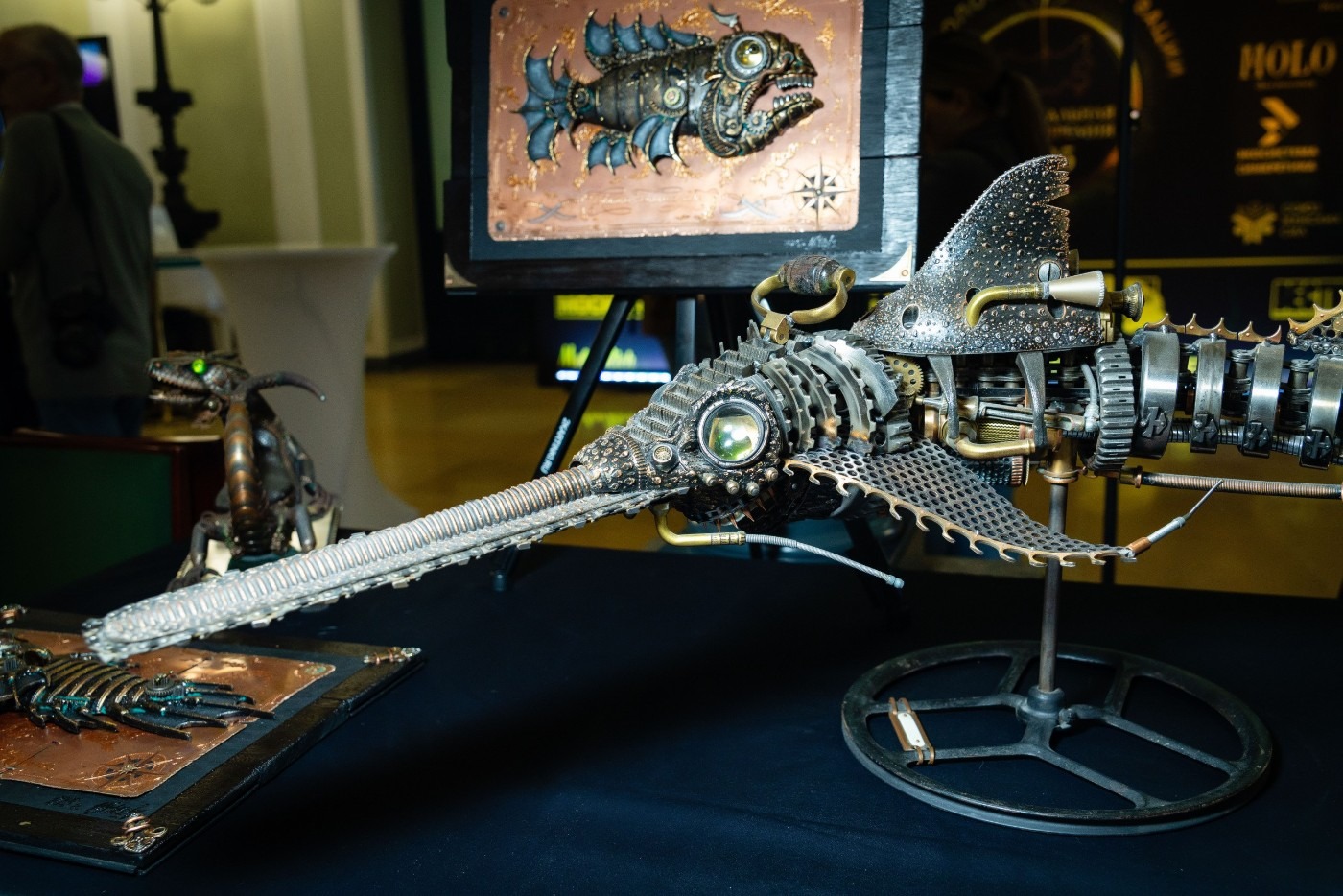 Была представлена коллекция работ Игоря Шевченко – ювелира, дизайнера, стеклодува, члена Союза художников России, автора эксклюзивных работ в стиле стимпанк, объединяющем футуристические технологии и ретроэстетику.
