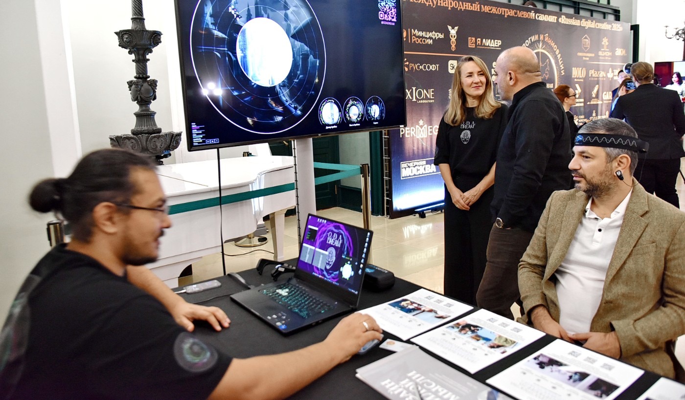 В рамках Russian digital creative-2025 в фойе Торгово-промышленной палаты развернулась специальная экспозиция — симбиоз технических инноваций и искусства.