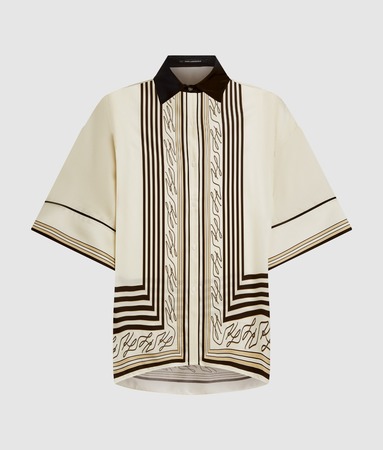 В эпицентре событий — костюмы свободного силуэта, платья, жакеты и брюки с мягкой посадкой. Рубашки и топы приобретают новые пропорции — от минималистичных моделей до интерпретаций с выразительной фактурой и четкой графикой. Модели балансируют между утонченным минимализмом и ярким характером бренда, где каждая деталь продумана и несет свой смысл. В выборе тканей дизайнеры обращаются ко льну, декорируя его вышивкой с вырезным логотипом, который формирует изящную изюминку сезона. Появляется тропический принт, навеянный виллой La Vigie, — не просто точкой на карте, а культовым убежищем кутюрье, его любимым местом отдыха на Лазурном Берегу. Именно здесь, среди пышной средиземноморской зелени и ослепительного света, рождалась особая, почти кинематографичная эстетика, ставшая визитной карточкой Дома. Принт раскрывается в комплектах из хлопка и вискозы, а также на трикотажных изделиях и рубашках.