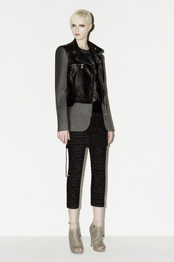 Короткие платья с элегантными складками спереди украшает калейдоскопический узор из мелких крокодильих чешуек, но еще более оригинально — и, что немаловажно, красиво — выглядит «готический» узор как будто из черного кружева, украсивший джинсы с завышенной талией и вставки на топах и юбках. Более практичная сторона коллекции — серия стеганых байкерских курток из кожи стандартного черного и кислотно-желтого цветов и классные весенние пальто с укороченными рукавами, которые не только в хипстерском гардеробе станут центральным предметом верхней одежды, но и в гардеробе каждой поклонницы моды.