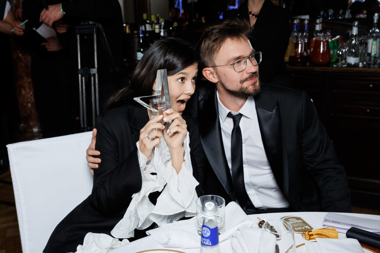 «Актрисой года» стала как раз Марина Александрова. Награду вручили Антон Рогачев и Алексей Лукин, ее партнер по сериалу «Макрон». В этом году успех и звание кинобогини года ей принесла не только картина «Москва слезам не верит. Все только начинается», но и сериалы «Мосгаз 11. Розыгрыш» и «Дыши». В своей речи она поделилась мыслью: