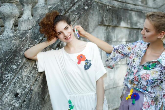 Брошь в понимании Юлии Ивановой интересный и многогранный аксессуар, в который несомненно можно влюбиться надолго, научившись с ним играть. Это сигнал, поданный миру: я сама хозяйка своего костюма и только мне решать, какой я буду. Потому яркая легкая брошь может найти себе место где угодно – как настоящая женщина, она выбирает, где ей быть – в волосах или на лацкане; украсить ли пояс юбки или карман брюк, переместиться на спину или уверенно поселиться на джинсах. Как сама мода и человеческие отношения, она интересна и многогранна в своем выражении того, что вы чувствуете… А какую историю будет рассказывать тот или иной девичий образ с вашего костюма, о каких напоминать серьезных разговорах или милой болтовне – решать только вам. И вашей подруге!