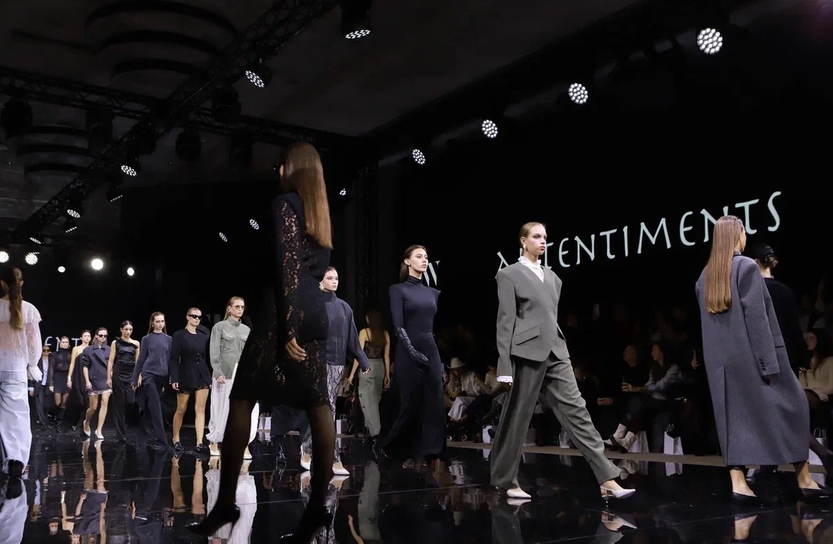 Далее, в антитезу предыдущему показу, выступил питерский «AUTENTIMENTS». Девушки-основательницы представили smart-коллекцию для истинных бизнес-леди: приталенные силуэты, строгие модели и пиджаки с мужского плеча. Заметили кружево и пайетки – акцентно, но деликатно.