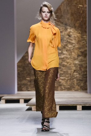 В будущем сезоне Creatures of the Wind предлагают сочетать то, что на первый взгляд не кажется сочетаемым. Струящиеся силуэты и свободные формы здесь идут рука об руку со строгими линиями и четкой геометрией. Так создается особенный мозаичный, если не витражный эффект. При этом образы вполне гармоничны и даже наполнены определенной романтикой. Что касается цветовой гаммы и использования принтов, то и это должно контрастировать друг с другом: яркий красный с цветочным узором василькового оттенка, например. Фактуры в одном образе дизайнеры Creatures of the Wind предлагают использовать тоже разнородные: можно взять грубую ткань, напоминающую мебельную обивку, и добавить к ней свободно развевающиеся складки шелка.
