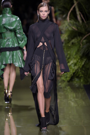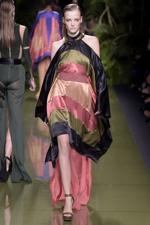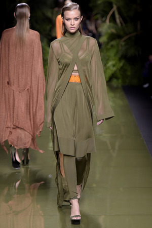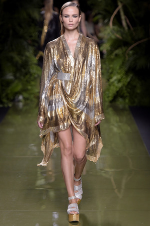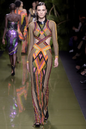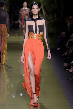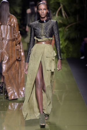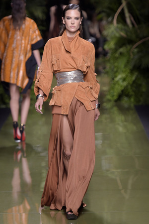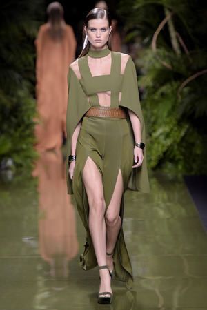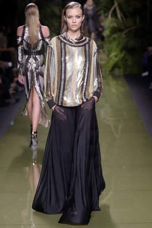 «Моя армия Balmain растеряла свою броню», – прокомментировал весенне-летнюю коллекцию дизайнер, ссылаясь на желание «открыть дом для более широкой аудитории». Видимо, именно поэтому у большинства моделей можно увидеть такие большие вырезы и участки обнаженного тела. Однако образы совсем не смотрятся агрессивно и подчеркнуто сексуально. Романтики и нежности всей этой феерии добавляют драпировки кафтанов, накидок, свободных платьев и складчатых брюк.