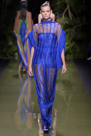 Чтобы оправдать обнаженное тело, в таком изобилии присутствовавшее в новое коллекции, Оливье использовал тему тропиков и пальм, через которые дизайнер попытался создать атмосферу летнего отдыха. Однако тема гламура не забыта: металлизированные сетки и кристаллы в коллекции также присутствуют. Объясняя эти образы, Рустен также добавил: «Текучесть, расслабленная чувственность и мягкость – главные темы моей коллекции».