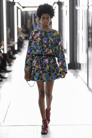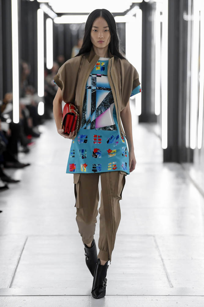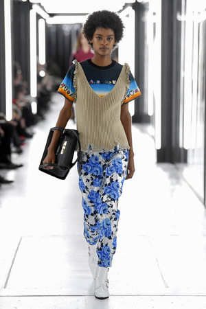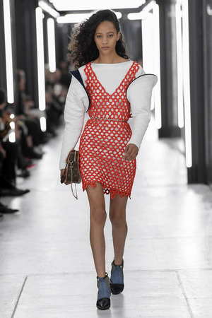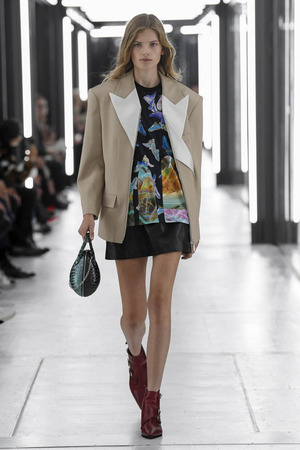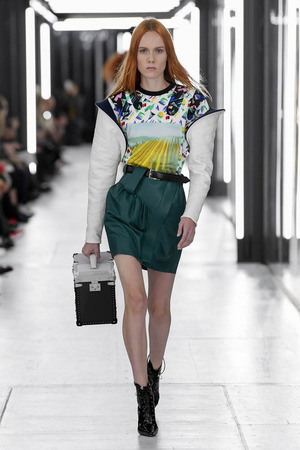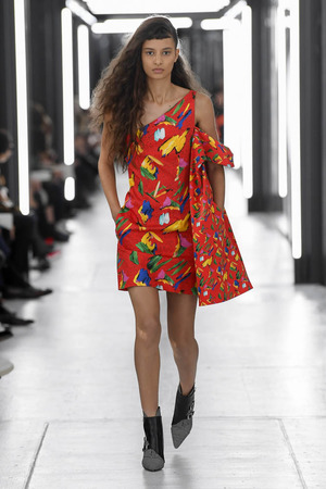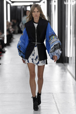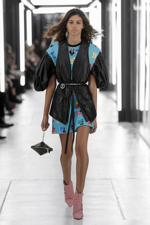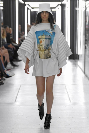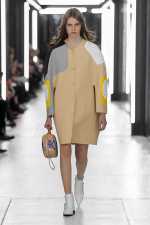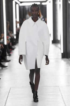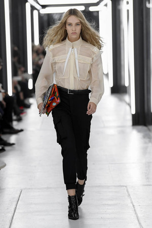 Чтобы предложить современной женщине современные доспехи, в которых она будет себя чувствовать не только уверенно, но и комфортно, Николя Гескьер использует преувеличенные объемы. Некоторые детали он делает похожими на рыцарские доспехи и соединяет их между собой контрастными тканями. Дизайнер использует угловатые формы и резкие конструкции. В некоторых случая он черпает вдохновение в наследии дома Balenciaga, который когда-то возглавлял: отсюда кольчуги, скульптурность и андрогинность образов.