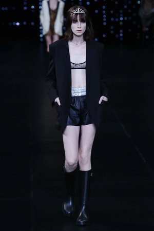 Вне всякого сомнения, создавая свою последнюю коллекцию, Эди Слиман вдохновлялся образом Кортни Лав, возвращающейся утром из клуба. Если сам Ив Сен-Лоран был не прочь потусоваться с богемой, то настоящий креативный директор марки прибавляет к этой теме изрядную долю панк-рока.
