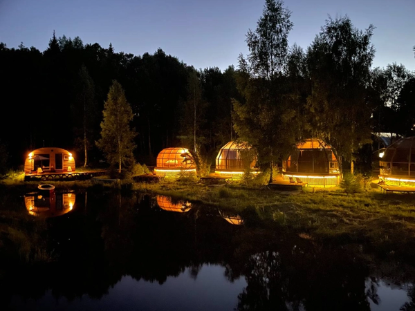 Глэмпинг "Под небом" на Пестовском водохранилище в 25 километрах от МКАД демонстрирует пятизвездочный подход к уединенному отдыху. Сафари-тенты располагаются таким образом, чтобы обеспечить наслаждение уединением и тишиной с панорамными видами на водную гладь. Гости могут заниматься йогой по утрам, плаванием или созерцанием закатов — каждый находит на берегу занятие по душе. Парная с панорамным окном и горячие купели с видом на водохранилище дарят расслабление после насыщенного дня.