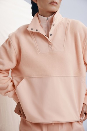 - Толстовка свободного силуэта из мягкого флиса с воротником-стойкой — планку можно расстегивать, подстраиваясь под погоду;