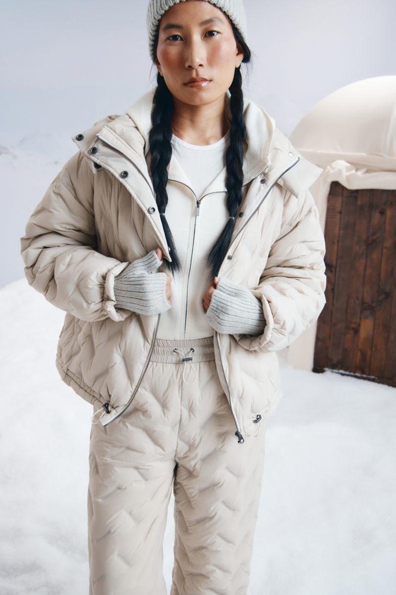 - Стеганый пуховик с водоотталкивающей пропиткой и съемным капюшоном — комфорт и защита в дождь и ветер (скоро в продаже);