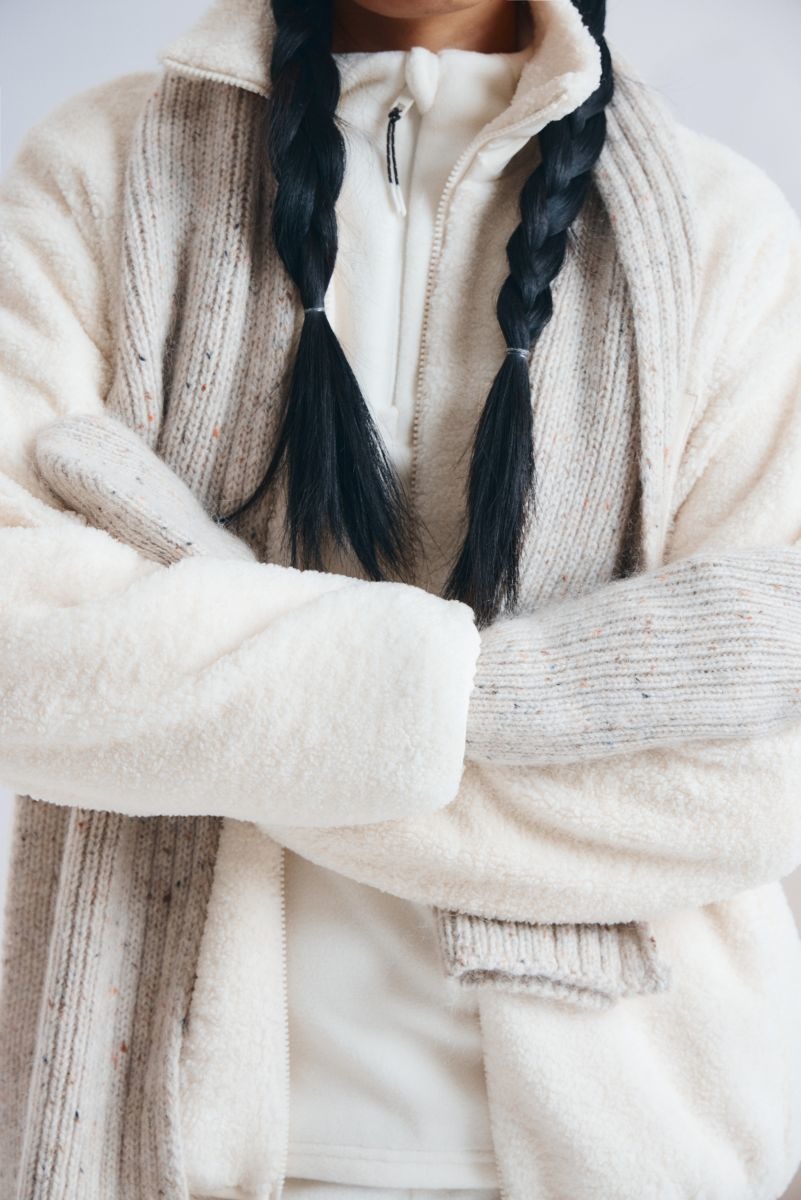 Любимые базовые модели сделали подходящими для холодной погоды — удобные костюмы из футера, шерпы и плащевки утеплили флисом или начесом. А также добавили функциональные детали — высокие воротники, эластичные манжеты и надежные застежки, которые защищают от холодного ветра.
