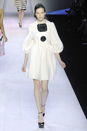 Богатые цветовые оттенки и объем стали основными характеристиками весенней коллекции дизайнера Жана Батиста Вали. В основу коллекции легли яркие оттенки розового, неоново-желтого, белого, кремового, голубого. Коллекция изобиловала аксессуарами – крупными бирюзовыми ожерельями, яркими шелковыми поясами, рискованно высокими босоножками на платформе, перьями, украшавшими платья и пальто. Дизайнер не забыл и о тренде металлических оттенков, продемонстрировав серебристые мини-платья и пальто.