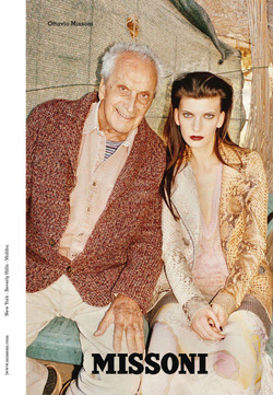 Звездой рекламной кампании Missoni сезона осень-зима 2011\12 стал лично "Дедушка Missoni" - Оттавио Миссони. Фотограф Юрген Теллер запечатлел его в компании моделей Кэтлин Ас, Кинги Раджак, Кристины Салинович и Валерии Келава.
