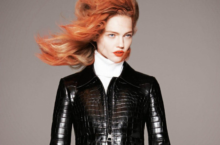 Рыжий оттенок волос обычно называют огненным, сравнивают с рубином или цветом вина, но здесь не подходит ни один из предложенных эпитетов. Мода на окрашивание волос с эффектом выцветания принимает интересный оборот в этой съемке. Оттенки от светлого к темному располагаются теперь не вертикально, а по полукругу — от уха до уха. Более темные пряди мешаются со светлыми, почти белыми, напоминая ленты или накладные пряди, придающие прическе объем. Результат выглядит более хаотичным, чем мелирование или колорирование, ставшее популярным в последние годы. Vogue Paris делает ставку на очень молодой тренд уличной моды, посмотрим, получится ли у них сделать его по-настоящему массовым.