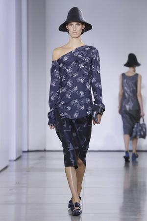 Рукава моделей немного опущены и покаты. Широкие сверху, они резко заужены внизу. Элегантные блейзеры имеют две пуговицы, что тоже немного старомодно. Современности и жизни придают разрезы и широкие манжеты. Многослойные платья-фартуки смотрятся очень архитектурно. Из минимума приемов и деталей дизайнер создал собственную философию, которая – что важно – не противоречит философии дома.