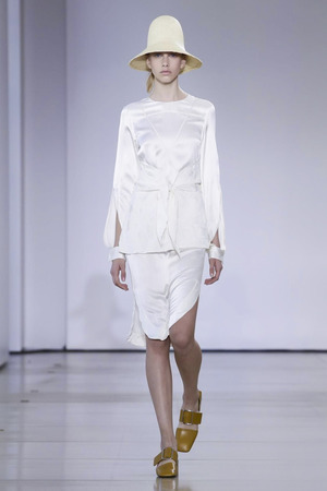 Родольфо Пальялунга, который полтора года назад стал креативным директором Jil Sander, продолжает минималистические традиции марки. Лаконичные платья из атласа и шелка дизайнер просто дополнил соломенными шляпами и обувью на невысоком квадратном каблуке. Главное – выдержать верную цветовую гамму.