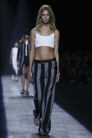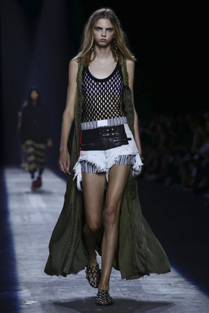 В новой коллекции Вэнг, безусловно, обращается к своим корням, которым было посвящено и видео, сопровождающее показ. Гости смогли увидеть очень насыщенный микс мощных образов с подиума и рекламных кампаний. Однако такое обращение к собственной истории вовсе не делает Вэнга неактуальным, дизайнер по-прежнему сосредоточен на будущем, куда направляет всю свою энергию. Причем будущее Александр традиционно связывает с городской средой и культурой. Первый ряд, состоящий из Леди Гага, Канье Уэста, Ники Минаж и The Weeknd, естественно прилагался к шоу.
