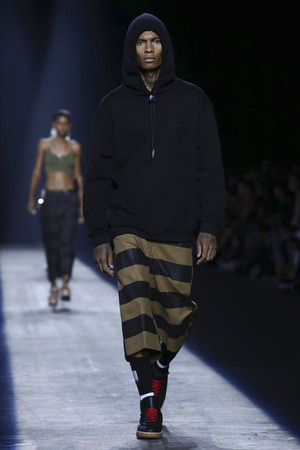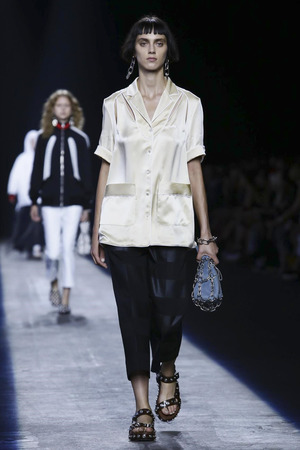 Что касается самой коллекции, то здесь можно было увидеть очень разные миксы: расслабленность пижамного стиля здесь мешалась с брутальностью необработанных краев и швов, а романтический бохо – с почти-что деловым дресс-кодом. Отдельное внимание на оверсайз-толстовках, напоминающих о баскетболе и боксе. Вэнг по привычке смешивает спорт и стритстайл, но делает это крайне элегантно.