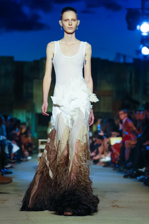Что касается образов, то: как и предполагалось, весенне-летняя коллекция состоит из трех частей: женской, мужской и моделей с элементами haute couture. Здесь большое внимание уделено расслабленному стилю, а некоторые наряды напоминали о роскошных будуарах. Обилие прозрачных тканей, шелка и кружева сделало свое дело. При этом откровенность и чувственность образов не были излишне сексуальными.