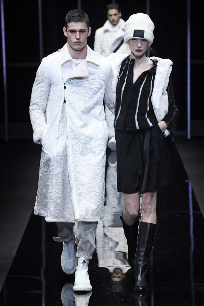 Больше 140 новых образов представил Джорджио Армани на минувшей миланской Неделе моды. Удивительно, но долгие годы дизайнеру удается не просто оставаться самым плодотворным модельером, но при этом сохранять собственный оригинальный стиль и в то же время быть в авангарде моды. С одной стороны, каждая коллекция мэтра – это оттачивание своей фирменный манеры до идеала. С другой, Армани всегда если не актуален, то уж точно не старомоден. На этот раз суперлюксовый стиль его марки обновляется темой зимних видов спорта, а также использование современных и экологичных материалов. Приятные новости для приверженцев осмысленного производства и потребления: дизайнер отказался от натурального меха в пользу искусственного. Правда, выглядит он на удивление роскошно! В целом, осенне-зимнюю коллекцию Emporio Armani однозначно характеризовать сложно из-за ее масштабов, но не будет неправильным назвать ее одновременно строгой и мягкой.