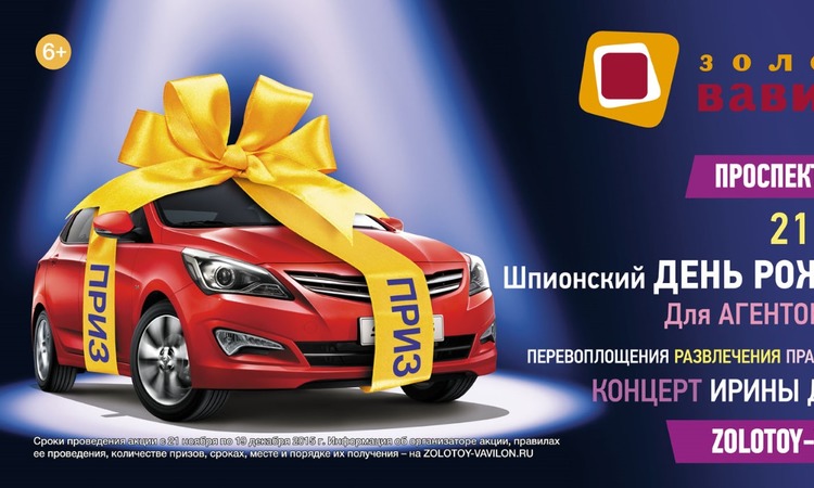 Настроение праздника с призами и подарками в честь дня рождения ТРЦ продлится целый месяц: акции будут проходить вплоть до конца декабря. Так, посетители смогут попробовать свою удачу в розыгрыше автомобиля, с 21 ноября по 19 декабря собирая чеки на покупки в «Золотом Вавилоне». Победитель будет определен в последний день действия акции.