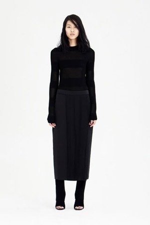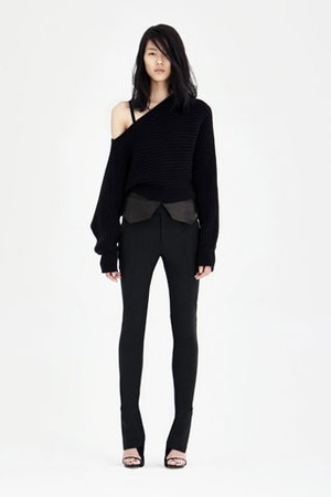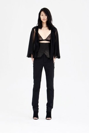 Коллекция pre-fall 2010 Александра Ванга (Alexander Wang) выполнена в традиционном для дизайнера черном цвете с не менее традиционной откровенностью. В некоторых луках дизайнер скорее раздевает, а не одевает женщин.