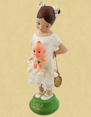 "В каждой взрослой женщине живет маленькая девочка," - так считает популярный израильский дизайнер Михаль Негрин. А без чего не может ни одна девочка? Конечно же, без кукол! Поэтому именно куклы стали особой "фишкой" ее бренда. Наиболее известными из них являются секстет кукол Pupa, Totti, Rainbow, Coco, Lollipop, Ema. У каждой имеется своя история, свой, неповторимый характер и типаж... Pupa - творческая , интелегентная и дружелюбная. Она взбирается на деревья , ныряет на глубину. Любит просторы, любит сидеть на берегу моря и наслаждаться водой, свежим воздухом и мечтать. Totti - обладательница обворожительной улыбки, нежная и эстетичная. Она миротворец, пишет стихи, играет на музыкальных инструментах и танцует. Когда она танцует и улыбается, время останавливается, зажигаются звезды на небе. Rainbow - энергичная и любящая жизнь. Не перестает меняться. Любит развиваться, учиться и путешествовать по миру. У нее есть своя изюминка и обаяние, авантюризм. Она прямолинейна и любит правду. Coco - интеллектуальная, загадочная и умная. В ее кругу общения много разных людей. Она любит сидеть в кафетериях со своими друзьями и обмениваться мнениями об искусстве и культуре. Lollipop - любимица всех. Веселая и энергичная, непостоянная и необычная, хорошо разбирается в языках и в людях. Любит быть рядом с морем любоваться горизонтом и наслаждаться минутами счастья наполняющими жизнь. Ema - молодая и веселая мама безгранично любящая, чувствительная, преданная и живущая настоящим. Любит помогать и создавать гармонию между людьми. Она мечтает о кругосветном путешествии и знает, что нет ничего невозможного. Но, помимо этих "раскрученных" кукол, Михаль и ее креативная команда без устали вояют разносортных, невероятных кукол, которые не спутаешь ни с какой другой, руки чужого мастера. У них особый взгляд, удивительный характер и неповторимый образ, ведь в каждую вложена душа. Это кроткие ангелочки, музицирующие на дудочках и арфах, или просто застывшие в улыбке, растерянности или с каким-нибудь забавным выражением лица , фривольные баронессы, заигрывающие с баронами, трогательные младенцы, обескураживающие своей простотой, мечтательные дамы с зонтиками, просто кокетливые девчушки или ретро-дамы в сетчатых чулках и без комплексов... Каждая кукла выглядит идеальной, как будто создавалась по строгому арифметическому плану. Как ни странно, никакого плана или конкретной задумки не существует. Очередной образ порождает сиюминутная фантазия фабричных умельцев, а руки мастеровито воплощают в жизнь странные, на первый взгляд, задумки. Тысячи пайеток, бусин и кристаллов Сваровски, сотни лент, кружев и лоскутков, десятки красок, лаков и блесток на выходе с фабрики превращают однообразные заготовки в произведения искусства.