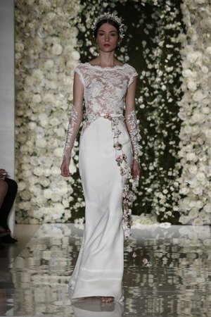Осенью 2015 Reem Acra демонстрирует довольно смелые модели, среди которых, например, платья с коротким рукавом и богато вышитые костюмы-двойки. В модельном ряду, не смотря на обильный декор каждого наряда, нет ничего неудобного или нефункционального: даже в платьях с тюлевой юбкой предусмотрен внутренний чехол, позволяющий невесте не волноваться во время выхода из машины или при съемке на природе. Удивительно, что предпочтения в оттенках у Reem Acra при этом довольно консервативны: только белый и бледный розовый.