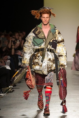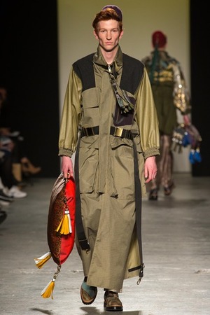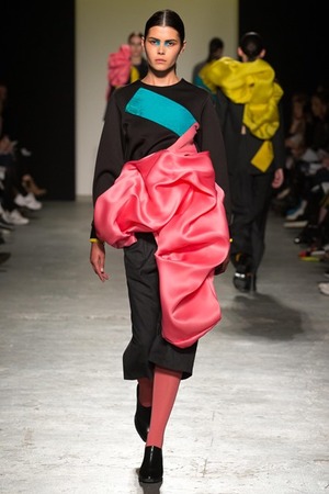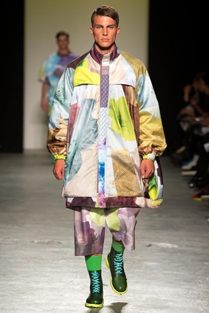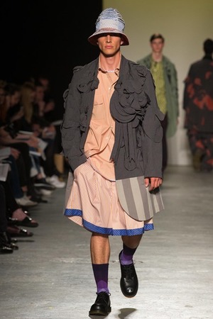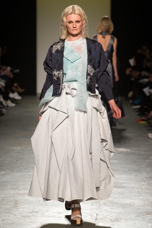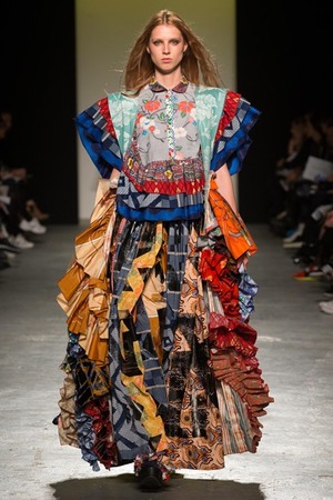 Итак, что же выбрали молодые дизайнеры, какими идеями подиумов они воспользовались? В первую очередь, это эклектика и многослойность, традиционные техники домашнего производства одежды и декоративных предметов быта — квилтинг, печворк, аппликация, вязание ключном. Ярко, почти гротескно, представлена восточная тема; причем, как увлечение ориентализмом — костюмом и культурой Японии и Китая, так и интерес к индийской теме, особенно ярко обыгранный в ансамблях, где военная форма сочетается с пробковыми касками британских колонистов.