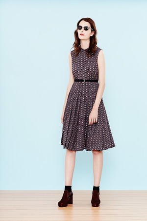 Orla Kiely Resort 2015 предлагает новый простые, но тонко выверенные принты: повторяющейся оттиск дамской туфельки, узор пчелиных сот и составной геометрический принт, похожий по стилю на многие выходившие ранее и популярные работы. Настроение коллекции Orla Kiely — скорее из 50-х. Короткие контрастные жакеты и пуловеры из трикотажа, пышные юбки,босоножки, надетые вместе с носками, очки "кошачий глаз" в пластиковых оправах, даже некоторые узоры отсылают к молодежной моде времен, когда рок-н-ролл только пробивал себе дорогу в мир.