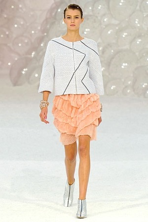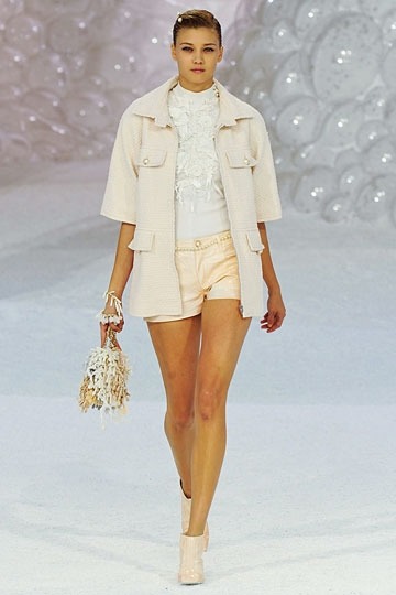 Как и Марк Джейкобс (Marc Jacobs) в своей коллекции для Louis Vuitton весна-лето 2012, Карл Лагерфельд (Karl Lagerfeld), создавая новую коллекцию Chanel, показанную под занавес Недели моды в Париже, пошел на радикальную смену образов. На смену темной, «вулканической» атмосфере показа осень-зима 2011-2012 пришла легкость и естественность подводного мира: раковины, кораллы, отшлифованные прибоем камни выступили в роли естественных декораций для показа коллекции весна-лето 2012. Ключевым элементом концепции весенне-летнего гардероба для Карла Лагерфельда стала легкость: новые ткани (которые, кстати, не сумел точно определить даже сам дизайнер), добавившие коллекции перламутрового сияния, нити жемчуга вместо традиционных поясов и самые светлые оттенки.