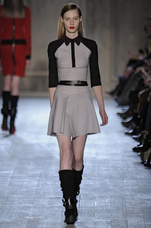 Даже элегантные платья с зауженной юбкой, ставшие за последние несколько сезонов своеобразной «визитной карточкой» Бекхэм, на этот раз обещают меньше женственности и больше «военной» строгости. Темную цветовую гамму, построенную на черном, болотно-зеленом, сером, лишь ненамного разбавляют красный и голубой – с акцентами опять-таки черного: кажется, в следующем сезоне осень-зима 2012-13 именно черный станет одним из самых востребованных цветов.