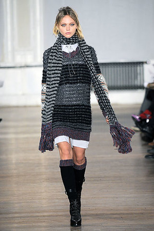 Став практически идеальным вариантом для создания теплых и уютных многослойных осенних ансамблей, коллекция Rag & Bone включила классические варианты для холодной погоды: шерстяное платье крупной вязки с белой сорочкой и длинным, небрежно обмотанным вокруг шеи вязаным шарфом, уютные шерсть и твид, мягкие вязаные кардиганы, в которых так и хочется завернуться, спасаясь от осеннего холода.