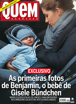 Супермодель Жизель Бюндхен (Gisele Bundchen), выстроив весьма успешную карьеру в США, не забывает о родной Бразилии: новорожденного сына Бенджамина Жизель продемонстрировала в первый раз именно бразильскому изданию Quem, опубликовавшему эксклюзивные фотографии Бюндхен и ее ребенка.
