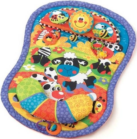 Также в ассортименте можно найти чудесные веселые коврики, которые точно не останутся без внимания малыша. Поверхность коврика сделана из материала разной фактуры, что поможет в развитии тактильных навыков. Здесь есть и шуршащие, и гремящие элементы, прорезыватель для массажа десен, съемные игрушки, которые можно взять с собой на прогулку. Развивающие коврики несомненно будут вызывать огромный интерес у ребенка долгие месяцы.