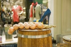 На одной из экспозиций вы увидите обувь поданную как главное блюдо, в другой туфли и сапоги вписываются в сельский пейзаж, расположившись вдоль забора и в деревенской телеге полной сена.