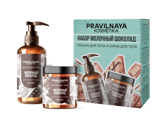 Pravilnaya Kosmetika - подарочный набор для тела парфюмированный скраб и лосьон «Молочный шоколад»