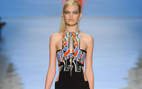 Новая коллекция Etro сезона весна-лето 2012, представленная в рамках Недели моды в Милане, совершенно неожиданно ознаменовала некий отход от традиций бренда – хотя и получилась, в конечном итоге, не менее яркой, чем традиционный гардероб Etro. Отличия от коллекций предыдущих сезонов коснулись ключевых моментов: «визитную карточку» Etro, узор пейсли, заменили в большинстве случаев графические, с каким-то футуристическим привкусом принты, а громкую симфонию «базовых» цветов – достаточно мягкие, «шербетовые» оттенки.Читать далее > | |