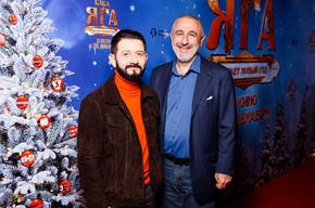 ![]() | ![]() Артем Ткаченко, Людмила Артемьева и Михаил Галустян с семьей на светской премьере фильма «Баба Яга спасает Новый год» |